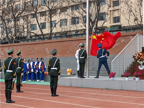 随着主持人宣布典礼正式开始,两校区开启典礼第一项升旗仪式,五星红旗迎着晨风冉冉升起,全体师生肃立注目,雄壮的国歌声响彻校园,庄重的仪式感中,满是对新学期的向往。