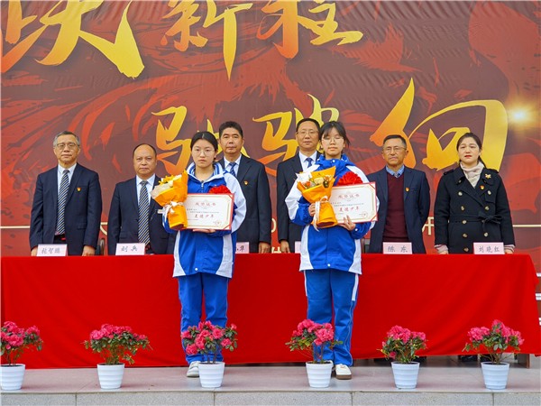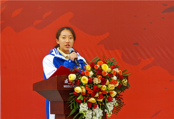 随后,两校区的师生代表依次发言。三友路校区高三(7)班的王子轩同学,道出了备考学子的坚定决心,喊出“不负韶华,不负自己”的青春誓言。安宁河校区高一(5)班的黄馨儀同学分享了新学期的成长规划,字里行间满是朝气与锐气。