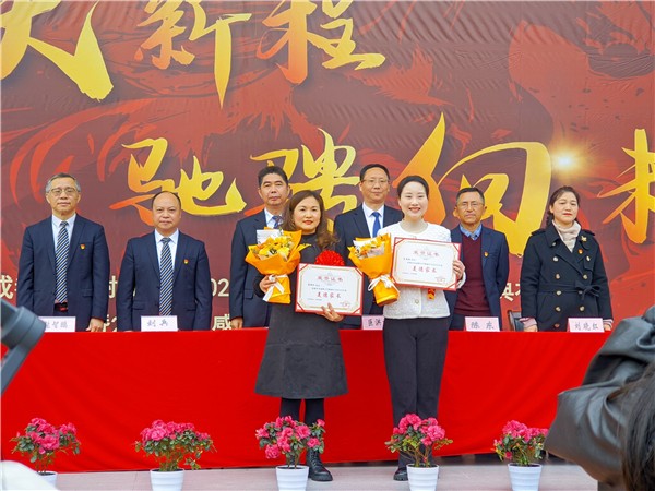 典礼最动人的环节,莫过于2025年度“感动附中人物”颁奖典礼。成都大学附属中学校长巨洪礼郑重宣读表彰决定,获奖的学生、家长、教师依次走上领奖台。一句句饱含温度的颁奖词,道尽了平凡日子里的坚守与闪光,台下掌声经久不息,榜样的力量在学子心中悄然扎根。