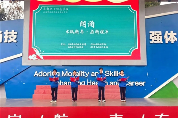 随后,校园广播站的同学们带来朗诵节目《跃新年 启新程》。铿锵有力的声音在操场上空回荡,同学们用饱满的热情诉说着成电学子对未来的期许,一字一句都传递着同学们对新学期的坚定信心。全体师生的掌声为春日增添了无限生机与力量。