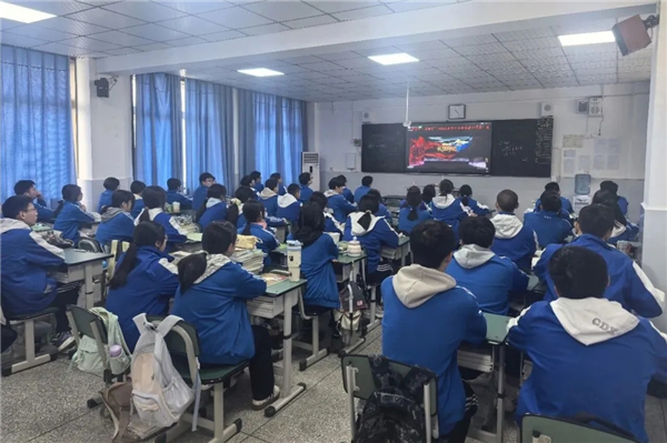 开学典礼结束后,各班级学生回到教室,通过线上直播同上“开学第一课”。此次“开学第一课”从千年蜀道的文明回响、长征路上的信仰足迹,到城市上空的创新脉动,层层递进展开讲述,带领全体学子共同开启新学期的新征程。