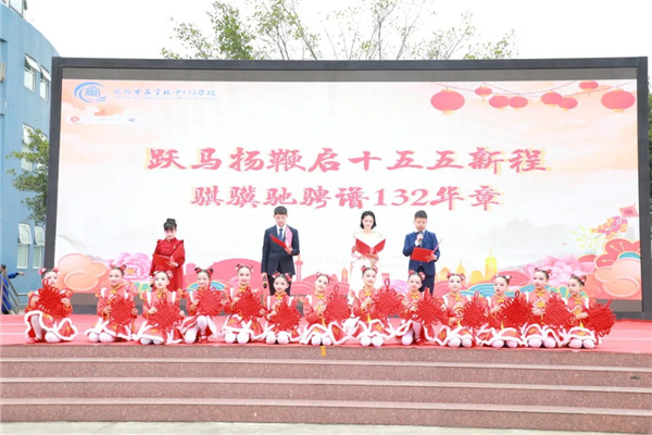 随后,石室联中132学校党总支副书记、校长王小兰为全体师生温暖寄语:以“焕新”之姿,启“未来”之程,葆“热爱”之情,将“132 一生爱”的期许播种到每个人的心田。