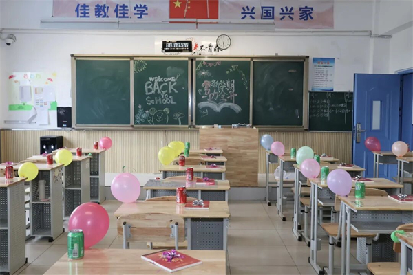 校园与教室的布置,更是藏着独属于佳兴的温柔。德育处、教务处与各科室老师携手,将操场、旗台精心布置,展板上的春日主题与校园的草木相映成趣;教室里,窗明几净,桌椅整齐,黑板报上的暖心寄语、课桌上的小小惊喜,让每一个角落都充满了“欢迎回佳”的温暖。