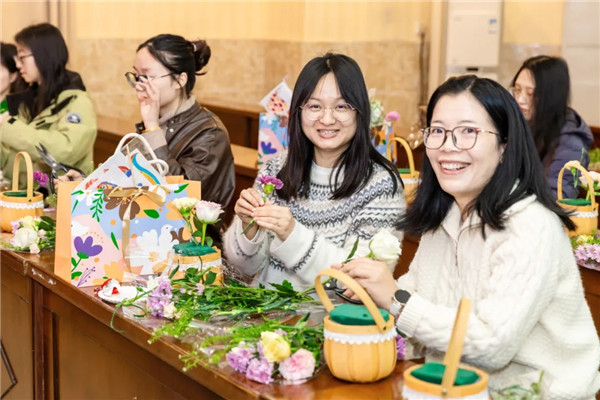 为让每一位她都能卸下疲惫、乐享时光,学校精心打造了五场特色体验,以插花品韵、扎染寻美、指尖焕彩、甜意相伴、美食暖心的多样美好,让大家在自由选择中,邂逅独属于自己的春日浪漫。