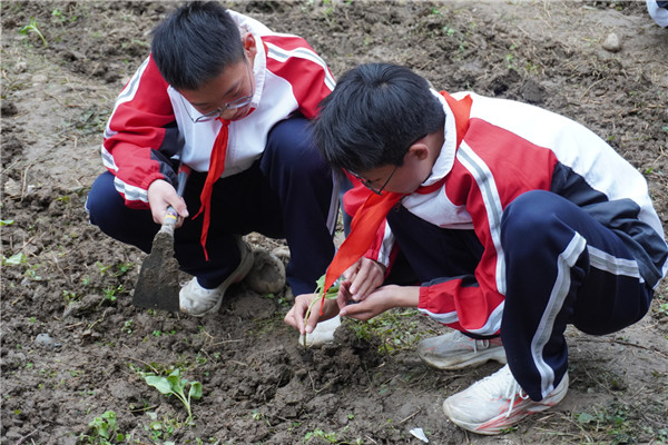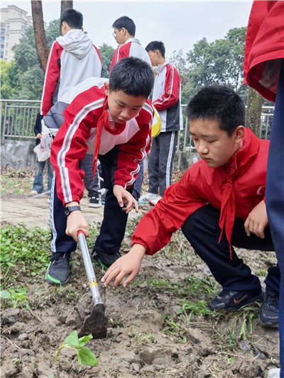种植环节,在班主任、家长代表及劳动教师的悉心指导下,同学们分工协作、互帮互助,严格遵循种植规范,完成扶正幼苗、分层填土、浇足定根水等操作。