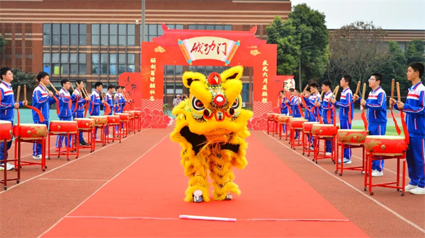 3月6日下午,蜀龙学校2023级中考百日誓师大会在激昂的鼓乐与翻腾的舞狮中震撼启幕。看!金狮矫若游龙,口中“金榜题名”红绸猎猎,舞出少年壮志;听!鼓手槌落如雷,鼓点激越似冲锋号角,擂响青春战歌。这不仅是视听盛宴,更是梦想的集结号——百日冲刺,誓创辉煌!
