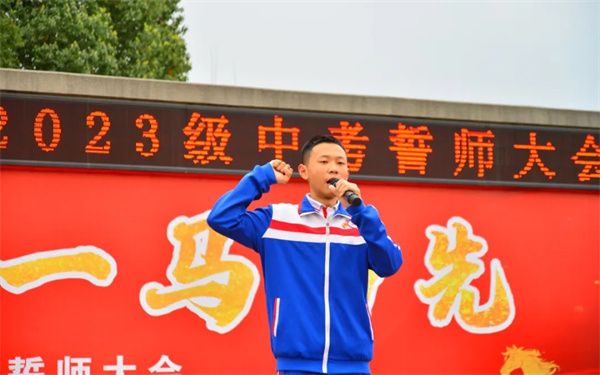 誓言铿锵,壮志凌云。初三学生代表谢锦程同学,带领全体初三学子高举右拳、庄严领誓。铮铮誓言响彻会场,字字千钧、催人奋进,彰显出同学们决胜中考、不负韶华的坚定信念与昂扬斗志。