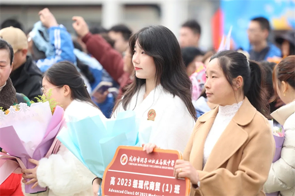 3月16日,成都市洞子口职业高级中学校(以下简称:洞子口职高)2023级全体高三学子身着校服,在父母殷切的目光与老师温暖的陪伴中,共同赴约这场以“青春有梦 勇敢前行 十八而志 未来可期”为主题的成人礼。这不仅是一场成长的加冕仪式,更是在青春长卷上挥洒而出的最绚烂篇章,为这段滚烫岁月镌刻下深沉而庄重的注脚。
