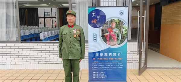 宣讲中,史利坤深情讲述了自己的战斗经历。作为四川江安人,他曾是当地知青,1978年3月应征入伍,驻守祖国西南边防。在对越自卫反击战的关键战斗中,面对敌人疯狂反扑,他冲锋在前、无畏枪林弹雨,成功缴获敌人军旗,以热血与忠诚捍卫了国家尊严。