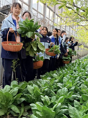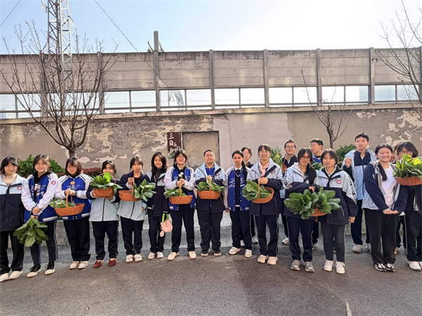 春风拂暖,万物勃发,“三自农场”一片生机盎然,这片小小的园地,已成为同学们践行劳动教育、滋养成长力量的重要阵地。成都市第三十七中学学子手提藤编菜篮,俯身于整齐的菜畦之间,定格成青春最动人的模样。