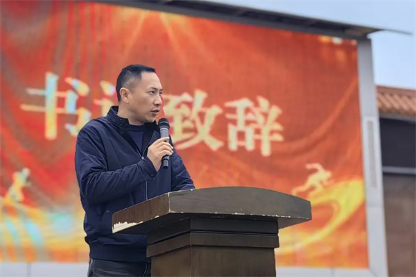 王书记登台致辞,言辞如涓涓细流,以深情传递奋进力量。他说:九年砺剑,六月圆梦。80天冲刺,望同学们:锚定目标,以合江少年之志砥砺前行;科学备考,以坚韧之心攻克难关;咬牙坚持,以拼搏之姿决胜中考。未来80天,愿家校同心,共赴荣光。祝合中少年笔锋所至,梦想开花;中考大捷,金榜题名!