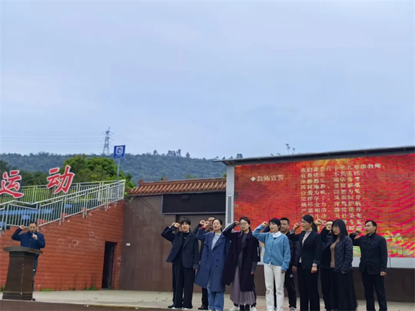 随后,全体九年级教师肃立台前,右拳高举,誓言铿锵。那声音穿越操场,回荡在三月的春风里,凝成一句无声的诺言:“此程风雨,我们同在。”