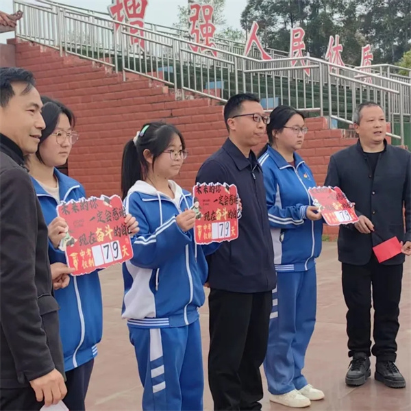 校长助理高贞贵、教学管理中心主任李超、副主任宁中国亲手为九年级各班递上中考倒计时牌。那一块块沉甸甸的牌子,不是压力的砝码,而是希望的信物,提醒着每一位学子:时光珍贵,莫负良辰。