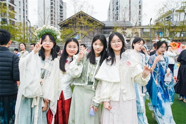 百花生辰,共庆春朝。千年前,成都二月花市“锦江两岸花如锦绣”,文人百姓于此赏花赋诗、买卖花卉,一派繁华。千年后的今天,七中墨池的校园里,同样的春意盎然。孩子们鬓边簪花,承袭的是古人“簪花以贺春”的风雅;他们在花树下流连驻足,与千年前踏青的古人遥相呼应。当传统文化不再是课本上尘封的文字,而是可以穿在身上、品在舌尖、玩于指尖的鲜活体验,这一刻,少年们便不再是文化的旁观者,而是成为了千年花事的续写者。