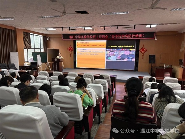 为守护每一位孩子的身心健康,压实班主任防控责任,筑牢校园健康防线,3月26日下午,温江中学实验学校春季传染病防控班主任专题培训会如期召开,全体班主任齐聚一堂,以学践知、以行践责,共织校园安全防护网。