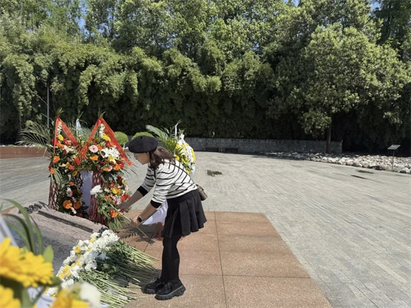 同学们身着整洁校服,怀着无比崇敬的心情抵达建川博物馆。祭奠仪式在安仁英烈群像广场隆重举行,全体师生整齐列队,面向英烈群雕肃立默哀,以真挚情感向为民族独立、人民幸福英勇献身的英烈致以深切哀悼,用行动传承英烈忠魂。默哀完毕,团员代表与唐仲英爱心小分队代表缓步上前,将洁白菊花敬献于英烈群雕前,既承载追思,更寄托着传承英烈精神、践行“强国有我”誓言的坚定决心。