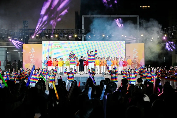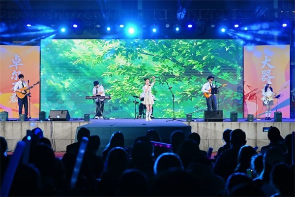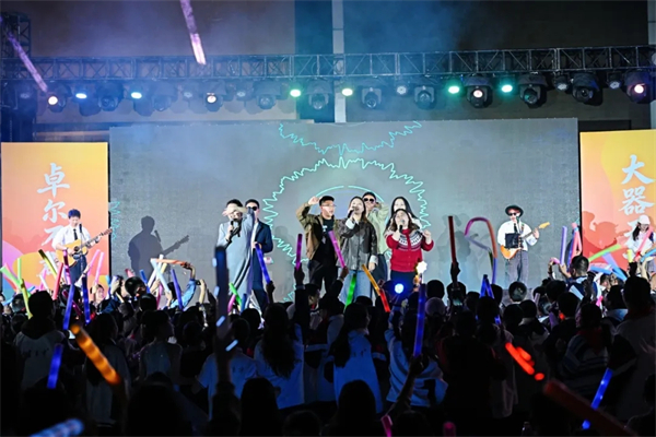 朱古力火箭筒乐队登场,《光年之外》《海阔天空》点燃全场,与初一、初二老师同台合唱,师生共鸣,高潮迭起。一首首经典热歌轮番上演,全场大合唱将青春氛围拉满。压轴一曲《离别开出花》,荧光汇成星河,感动与不舍交织。这一夜,少年热烈绽放,青春闪闪发光。