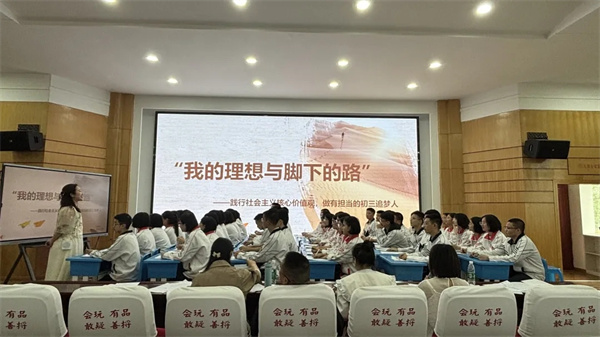 羊马学校陈佩沙老师:我的理想与脚下的路。带领学生践行社会主义核心价值观,做有担当的初三追梦人,引导学生在升学关键期锚定理想、践行价值、勇担责任,助力青春逐梦。