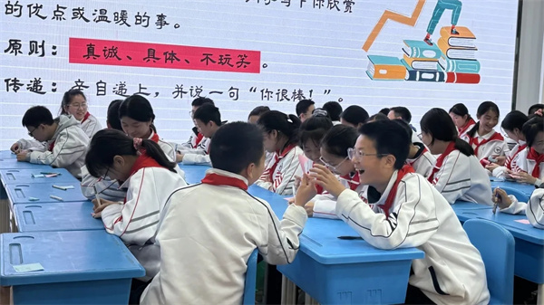 崇庆中学附属初中邹倩老师:拒绝“蛐蛐”,让友谊不掺“刺”。以新颖的视角拆解人际矛盾,通过角色扮演还原“插刺”场景,引导学生反思言语伤害,用沟通游戏重建信任,让“真诚交往”的种子,在青春心田生根发芽。