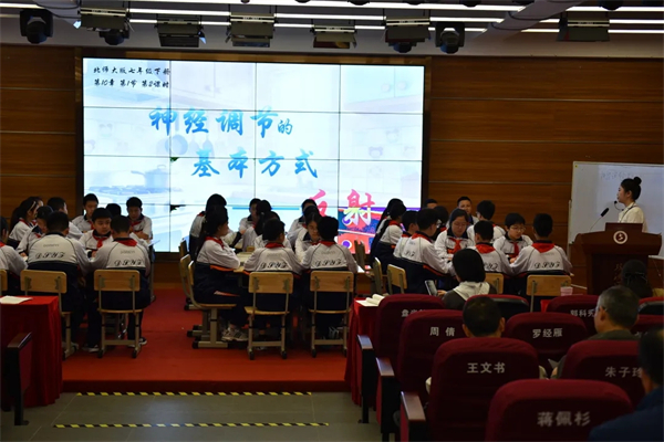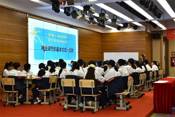 第二堂研究课由东升一中易可老师执教。易可以“切洋葱”这一贴近生活的情景切入,引导学生分析切洋葱时产生的不同反应,引出非条件反射与条件反射的概念。在此基础上,她组织学生讨论小金鱼“敲击—摄食”条件反射建立过程,让学生在实践中深入理解两种反射的特点与生物学意义。整堂课互动频繁,学生参与度高,课堂氛围活跃。