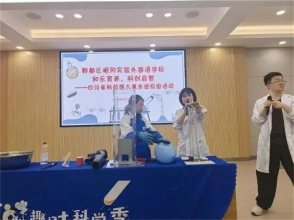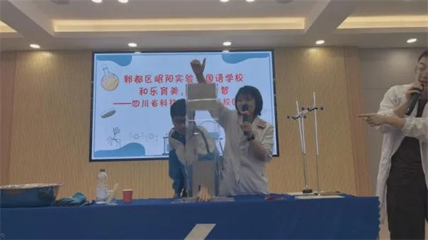 活动伊始,科普表演环节便点燃了同学们的热情。在活动现场,四川省科技馆的工作人员化身“科学魔法师”,带来了一场集趣味性、知识性于一体的科普盛宴。没有枯燥的理论讲解,只有生动有趣的实验演示和互动问答,让同学们在轻松愉悦的氛围中,近距离感受科学的神奇力量。
