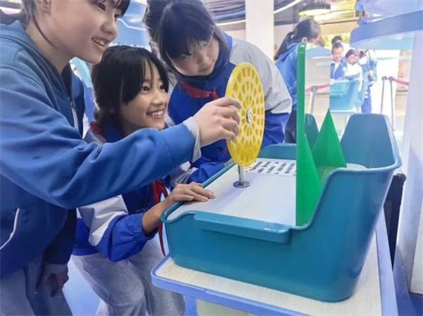 在科技馆工作人员的引导下,同学们有序排队,近距离观察、亲手操作各类展品。有的同学专注地摆弄着机械传动装置,探究力与运动的奥秘;有的同学驻足于光学展品前,感受光影变化的神奇;还有的同学沉浸在互动游戏中,在玩乐中学习科学知识、锤炼科学思维。每一个展品都像是一把钥匙,为同学们打开了一扇通往科学世界的大门,让大家在实践中体会科学的趣味性和实用性。