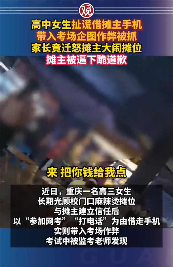 近日,重庆一名高三女生长期光顾校门口麻辣烫摊位,与摊主建立信任后以“参加网考”“打电话”为由借走手机,实则带入考场作弊考试中被监考老师发现。