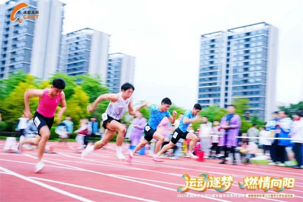 学校是四川省阳光体育示范校、田径传统项目学校,多年来涌现出顾俊杰(国际健将、全国冠军、2008年奥运选手)、李远智(运动健将、省中学生百米冠军、特招清华大学)等高水平人才,为成都市田径运动发展作出积极贡献。田径健儿在省市运动会、省中学生冠军赛、U系列联赛中多次获得团体总分一等奖及多项个人突破。成都市田径锦标赛摘下2金2银;区运会上,高中组勇夺13个冠军、团体总分222分高居榜首;2025年“星火杯”四川省青少年田径锦标赛,13名健儿斩获3金5银2铜,17人次进入省前八名。学校配备专职训练教师,每周6次科学训练,有效保障训练负荷与强度。跑道上的每一次冲刺,都是对极限的挑战与超越。