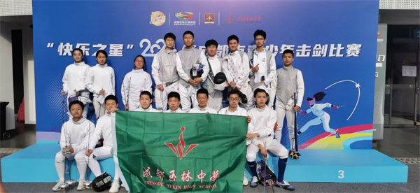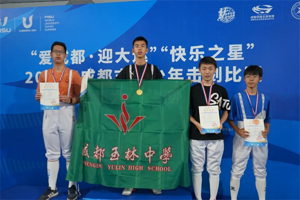 学校独创“击剑社团—击剑队—击剑比赛”三梯培养模式,U14女子重剑项目入选大运会测试赛,按国际FIE流程标准在大运场馆中完赛,代表德国队出战斩获团体季军;玉林击剑队在多项个人与团体赛事中屡获殊荣,在2024年成都市青少年击剑比赛中,一举拿下U16+女子重剑团体冠军、亚军等多项荣誉,共45人次获奖。剑光如虹,少年如风。
