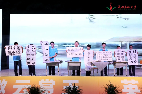 作为高新区美育实践基地,玉林中学将美术特长教育深度融入日常教学。学校与成都市书法家协会共建“书法美育实践基地”,将书法课程纳入常规教学,“学生书写校名”活动每学期评选、两月一换,成为校园文化风景线。2025年,百余名学生参与蓓蕾社区“无边界美术馆·青春坐标”联展,展出涵盖传统书画、非遗手作、现代艺术等作品100余件。非遗手作社团学子将竹编、蜀绣等蜀地文化与现代设计结合,让传统技艺焕发青春活力。在成都市青少年书画传习大会中,师生多人斩获佳绩,多名学生入围市级决赛并入选艺术展演。近年来,学校在全国中小学生绘画书法作品比赛(白名单竞赛)中屡获佳绩。画布上的每一笔,都是少年对世界的温柔凝视。