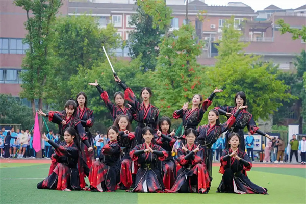 学校是“四川省竞技健美操训练基地”,队伍曾获全国万人健美操大赛一等奖,2024年四川省健美操锦标赛斩获3个第一名。队员们在全国及省市级赛事中屡获佳绩,充分展现昂扬向上的竞技风采与团队精神。律动之间,力量与优雅浑然天成。