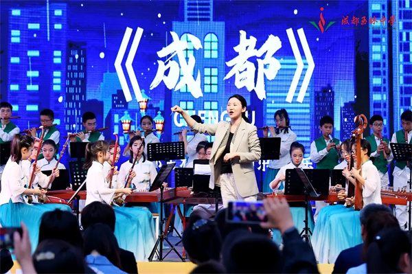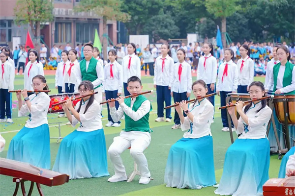 学校高度重视民乐教育,将其作为美育浸润行动的重要载体。民乐团编制齐全,涵盖吹管、弹拨、拉弦、打击等声部,定期邀请省、市专业院团演奏家进校指导,常态化开展排练与展演。乐团多次在校级大型活动、艺术节、开学典礼等场合精彩亮相,以一曲曲气势恢宏的民族管弦乐作品,展现传统音乐的独特魅力。学校被正式授予“高新区民乐美育实践基地”,通过“百名艺术家进校园”等品牌项目,持续提升乐团专业水准。琴弦上流淌的,是千年古意与青春新声的交响。