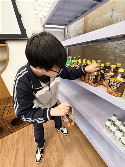 货架前瞬间围满了手持现金的同学——询价声、扫码声、记账声此起彼伏。有“店主”忙着补货,有“财务”收银算账。
