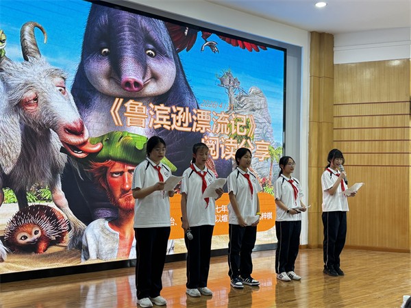 活动现场,各班节目精彩纷呈,亮点十足。同学们化身小小故事家,在《老人与海》中读懂坚韧与不屈。在《鲁滨逊漂流记》中感悟乐观与智慧。舞台之上,文字化为光影,角色穿越书页,让名著中的人物精神照进现实。