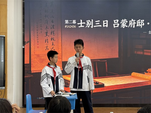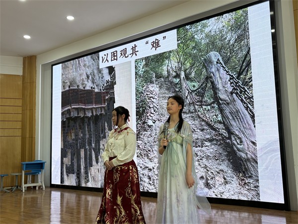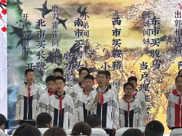 课本演绎环节,同学们将语文课堂搬上舞台,让沉睡的文字焕发新生。《卖油翁》场景剧以生动表演将“熟能生巧”的哲理娓娓道来;《孙权劝学》话剧让“士别三日,即更刮目相待”的典故跃然眼前;《木兰诗》以铿锵诵读再现巾帼英雄替父从军的家国担当;《蜀道难》的豪迈朗诵,带领听众穿越“难于上青天”的奇险意境,感受李白笔下的浪漫与豪情。