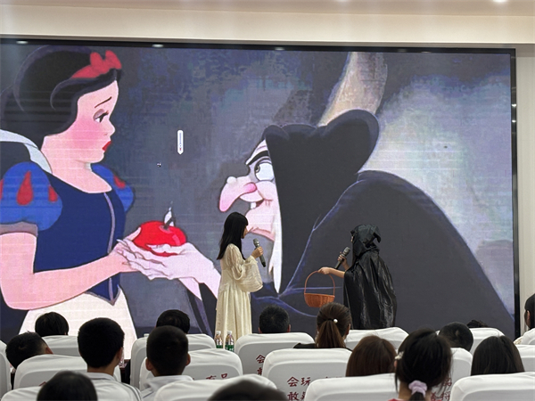 舞台剧表演环节,同学们用创意编排诠释真善美。《白雪公主与七个小矮人》将现场带入纯真温暖的童话世界——白雪公主的善良坚韧、王后的复杂多面、七个小矮人的憨态可掬与团结友爱,被演绎得生动传神。小品剧《未寄出的家书》、舞台剧《从叛逆到信仰》则以细腻表演触动人心,让“品格同行”的主题在真情演绎中悄然落地生根。
