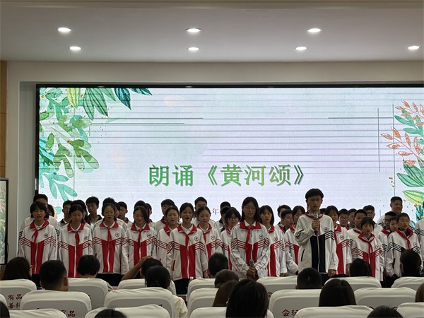 《黄河颂》铿锵有力,从“铁的臂膀”中品读民族精神,从“英雄的体魄”里汲取奋进力量!《革命组诗朗诵》致敬先辈,同学们或慷慨激昂,或低沉婉转,一字一句皆是对革命先烈的深情告慰。《少年当自强》则以磅礴气势喊出新时代少年的担当,将爱国热情推向顶点。