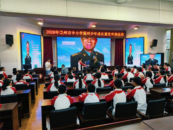 为引导青少年传承红色基因、汲取榜样力量,2026年4月22日,崇州市中小学“蜀州少年”成长课堂宣讲活动在崇庆中学实验学校顺利举行。会议由学生成长中心许晓军老师主持,崇州市教育局关工委领导雷云、七一实验小学党支部书记李双全、创新家具总经理周云、崇庆中学实验学校副校长黄婷及学生代表共同参与。特邀中国人民解放军一等功臣、战斗英雄王曙光同志主讲。以此激发学生爱国情怀与奋斗精神,树立正确人生观、价值观,培育有理想、敢担当、能吃苦、肯奋斗的时代新人。