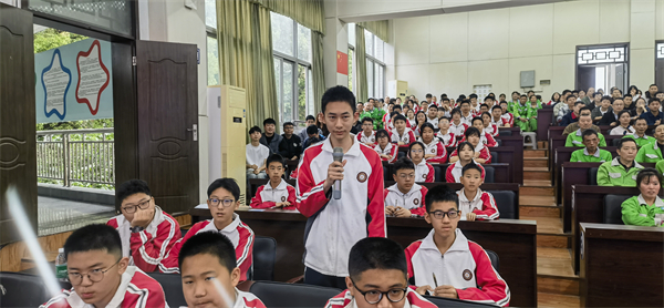 宣讲活动中,王曙光同志结合自身从军报国、浴血奋战的真实经历,用朴实的语言讲述了一段段惊心动魄的战场故事。他曾在老山前线舍生忘死,用青春和热血捍卫祖国尊严;即便身负重伤,依然以钢铁意志战胜伤痛,继续为国防事业贡献力量。通过聆听英雄事迹,学生们深刻理解了什么是忠诚、担当与坚韧。王曙光同志还鼓励大家珍惜当下和平环境,努力学习、锻炼品格,把爱国情、强国志、报国行融入日常行动中。这场生动的成长课堂,让红色精神不再是书本上的文字,而成为可感、可学、可做的鲜活榜样,激励蜀州少年向阳而生、向光而行。