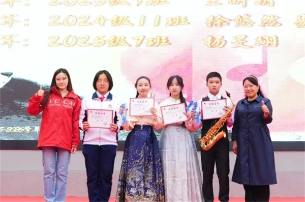 荣耀加冕环节,个人赛各项目获奖学子、集体赛获奖班级依次登台,这是对每一份努力的认可,更是对每一份热爱的嘉奖。掌声雷动中,少年们的笑容里,藏着收获的喜悦,更藏着对艺术的无限热忱。