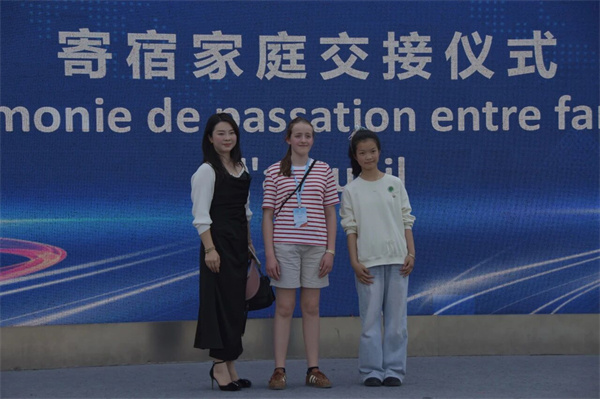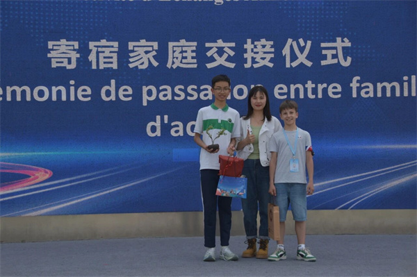 结对相融暖人心,跨国牵手结情谊。学校择优遴选13组优质寄宿家庭,组织法国学子走进本地家庭生活场景,沉浸式感受中国式烟火生活与优良家风家教氛围。结对家庭依次登台互动,中法少年友好结对、互赠心意礼品。语言无碍心意相通,笑容相伴情谊相连,真挚互动拉近了彼此距离,让跨国友好情谊在温情相处中生根发芽。