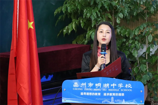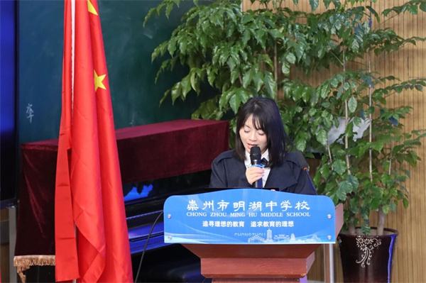 喜迎远道宾朋,深耕人文交融。活动伊始,崇州市明湖中学校长王彬致欢迎辞。王彬对法国师生代表团及全市教育同仁的到来表示热烈欢迎与诚挚问候,表示将以此次相聚为纽带,筑牢中法友谊根基,搭建文明互鉴桥梁,持续推动校园中外人文交流工作走深走实、薪火相传。