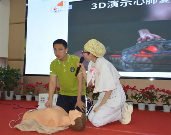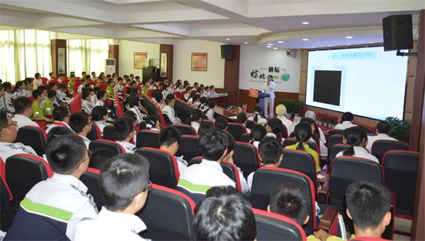 家长导师团是棕北中学促进学生全面发展的重要特色项目,旨在通过家长的行业经验和专业知识,为学生提供职业生涯规划教育,提升学生的综合素质与社会责任感。4月24日下午,成都市棕北中学桐梓林校区家长导师团的一员、四川大学华西口腔医院麻醉复苏室护士长熊茂婧和麻醉手术中心的蒋梦佳、罗强、刘知语以及罗名瑶四位老师在学校一楼阶梯教室为学生们带来了一堂题为“CPR黄金四分钟”的生命急救专题讲座。