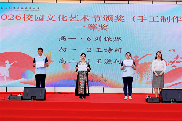暖场视频里呈现校园中成长与坚守的动人故事,为晚会铺就了温暖底色。颁奖环节,学校领导及来宾为手工、摄影、书法、绘画等比赛中的优秀学子颁发奖状,每一件作品都凝结着匠心与才情。副校长童裕惠携全体师生回顾了学校美育发展之路,细数动人瞬间,总结丰硕成果。随后,AI概念短片《智绘明天:培英未来校园图景》震撼亮相,展现智慧与温度交融的未来校园。在掌声与期待中,成都市树德实验中学党总支书记易永伦为培英学子送上深情期许,并郑重宣布艺术节汇演正式开始。