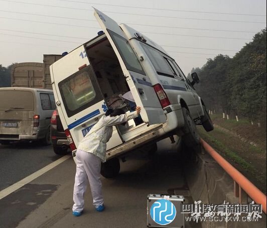 讲述 急诊接新生婴儿 遭惊魂一幕 晚7点,记者从成都市妇女儿童中心医院获悉,差一点出车祸的救护车,正是属于该医院。 据介绍,15日上午,救护车从医院出发前往成都市新都区人民医院,接收一名惊厥的新生女婴,返程时通过绕城高速。当时,车上有一名医院新生儿科王医生和两名护士。因为是新生儿,女婴被放在保温箱中照顾。 上午10点过,救护车行驶到绕城高速外侧72KM处时,因为车流缓慢,救护车便上了应急车道,赶时间。 此时,左前方的一辆雪佛兰SUV突然右转,进入应急车道,救护车躲闪不及,司机往右打方向盘,这才“骑”上了高速公路护栏。 就在车祸发生瞬间,王医生马上抱住装着婴儿的保温箱,女婴差一点就摔到了地上,王医生的手臂也被碰伤。 “幸好救护车没有冲出去,医护人员也没有受伤。”医院一位工作人员告诉记者。