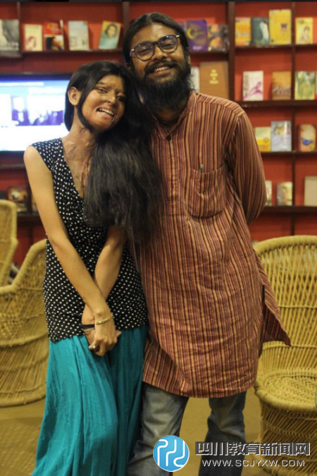 22岁的Neetu是咖啡店的服务生,3岁时被父亲泼了硫酸,现在活得很乐观。