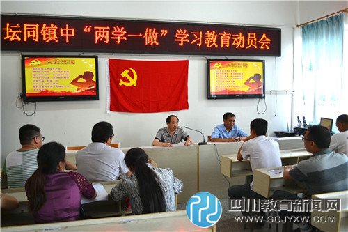 四川教育新闻网广安5月13日讯(通讯员 刘习伟)近日,该校党支部在学校三楼会议室隆重召开了“两学一做”学习教育动员大会,并举行了重温入党誓词活动。在支部书记梅文俊的带领下,面对党旗,重温入党誓词,再次表明自己入党的初衷和坚定的信仰。学习教育动员大会由学校副校长廖占清主持。