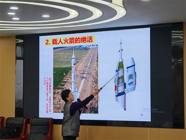 讲座中,老科学家以丰富的航天知识储备,用通俗易懂的语言、生动形象的案例,从神舟飞船的发展历程、人类把动物送上太空的实验、航天员的训练日常,到太空生活的奇妙细节,层层递进地为孩子们揭开了载人航天的神秘面纱。科学家通过高清图片、精彩视频片段,展示了火箭飞天、太空授课等震撼瞬间。当讲到关键知识点时,石磊耐心地引导大家猜测,当同学们答对时,石磊还把自己亲自撰写的书送给孩子们,现场师生无不为之热血沸腾。