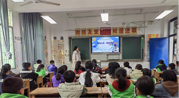 宣传周首日,利用升旗仪式开展心理健康周启动仪式。随后各班级的“阳光心灵快乐成长”主题班会率先拉开帷幕。班主任们借助生动的PPT,向学生讲解“情绪ABC理论”,用“同样是下雨,喜欢的人觉得浪漫,没带伞的人觉烦躁”这样的例子,帮孩子们理解“想法决定情绪”的道理。