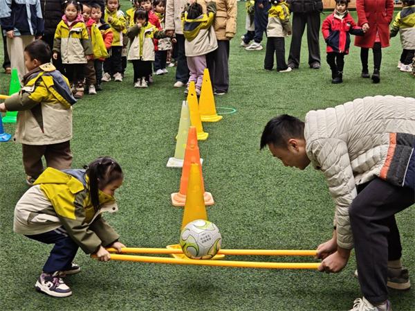 在集体教学活动环节,各班教师立足幼儿发展需求,以趣味游戏和情景化教学为载体,充分调动孩子们的积极性与主动性。亲子游戏环节更是将活动推向高潮,幼儿与家长携手投入各班特色游戏,默契配合、携手闯关,操场上此起彼伏的欢声笑语,成为了冬日里最温暖的风景。